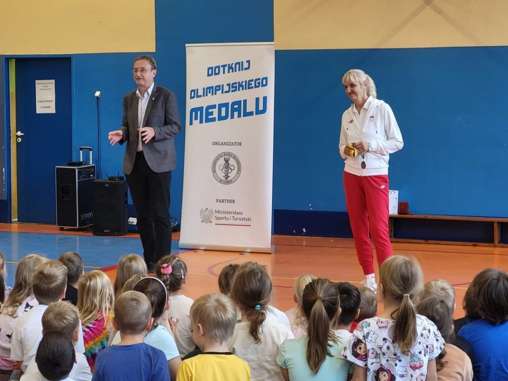 Z kolei uczniowie klas I-III mieli okazję dotknąć prawdziwego olimpijskiego medalu.